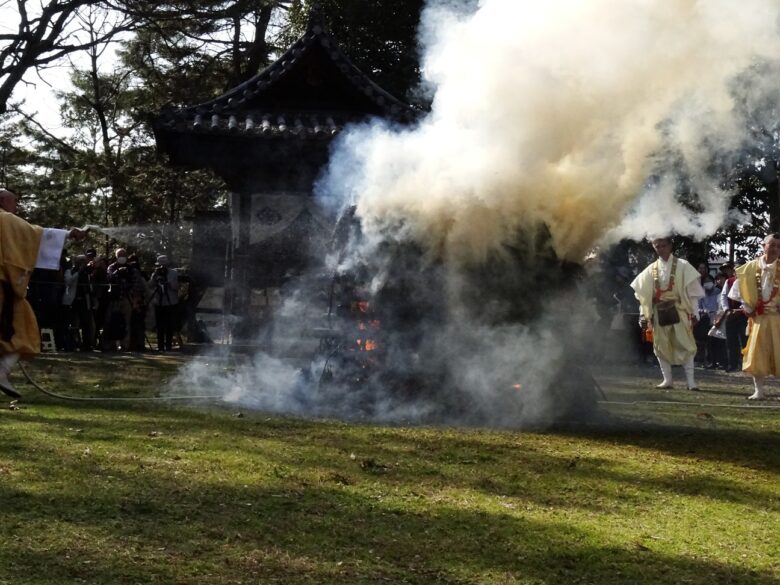 - 同じく22日、午後2時から行者堂前で採灯大護摩供を行います。
